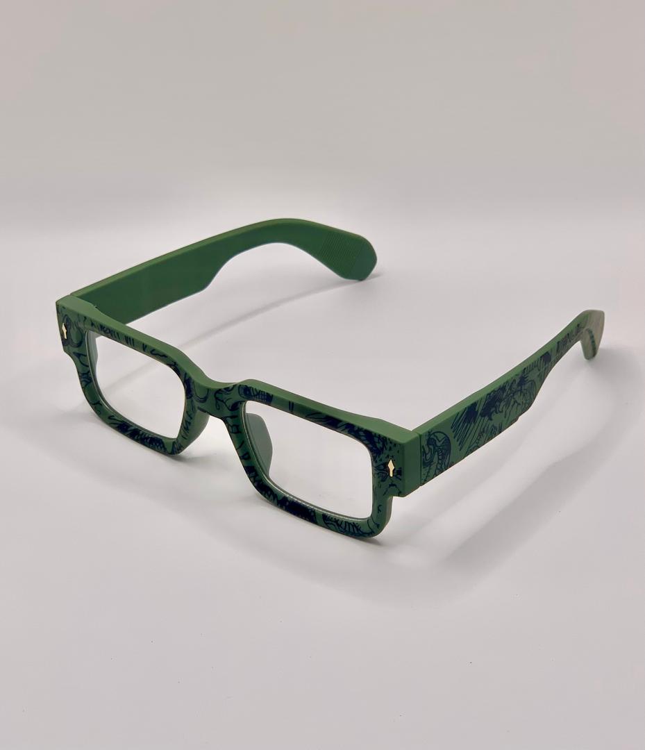 Vintage Square Glasses (Green)